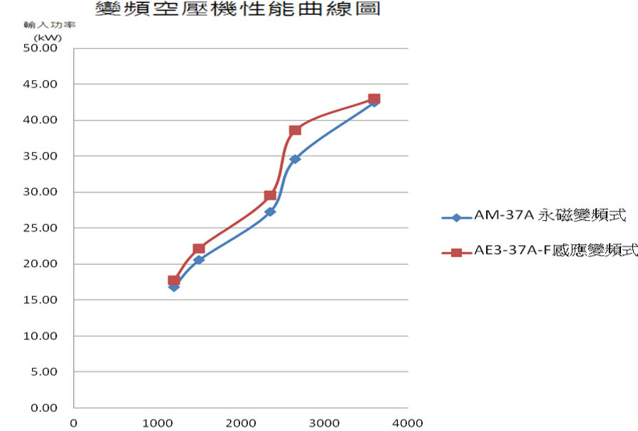 馬達(dá)型式 | 永久磁石式馬達(dá)與油電車(chē)同型式專(zhuān)為變頻空壓機(jī)設(shè)計(jì) | 一般效率感應(yīng)式馬達(dá) |